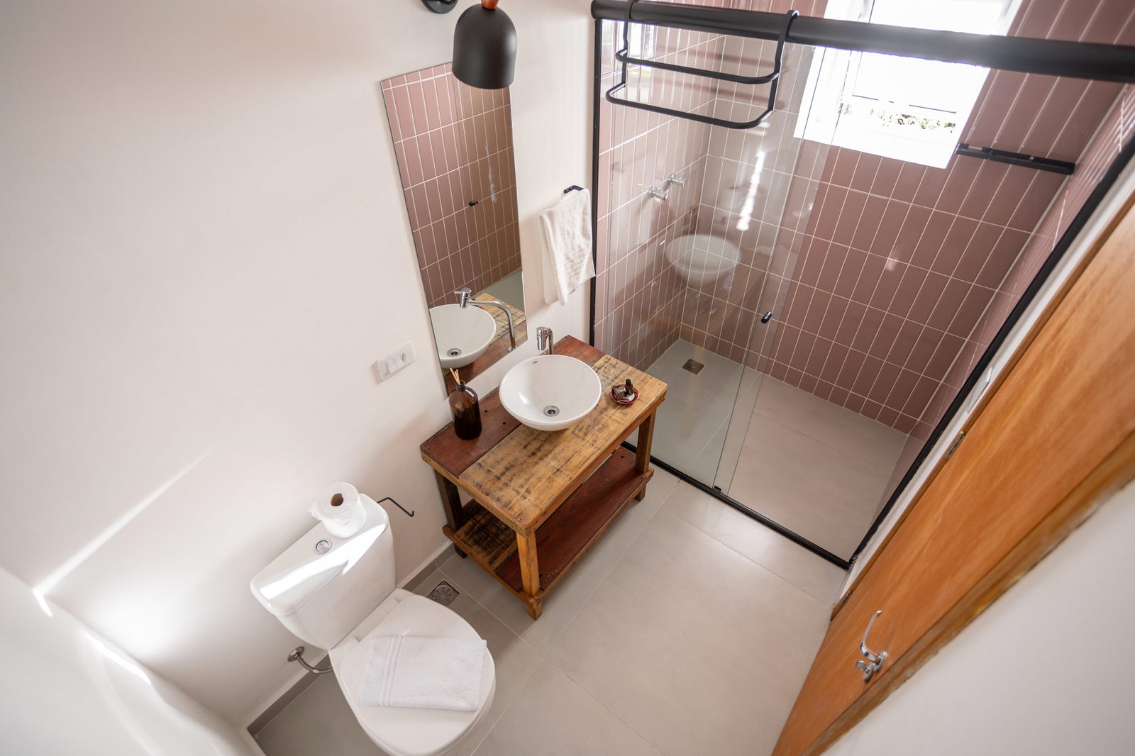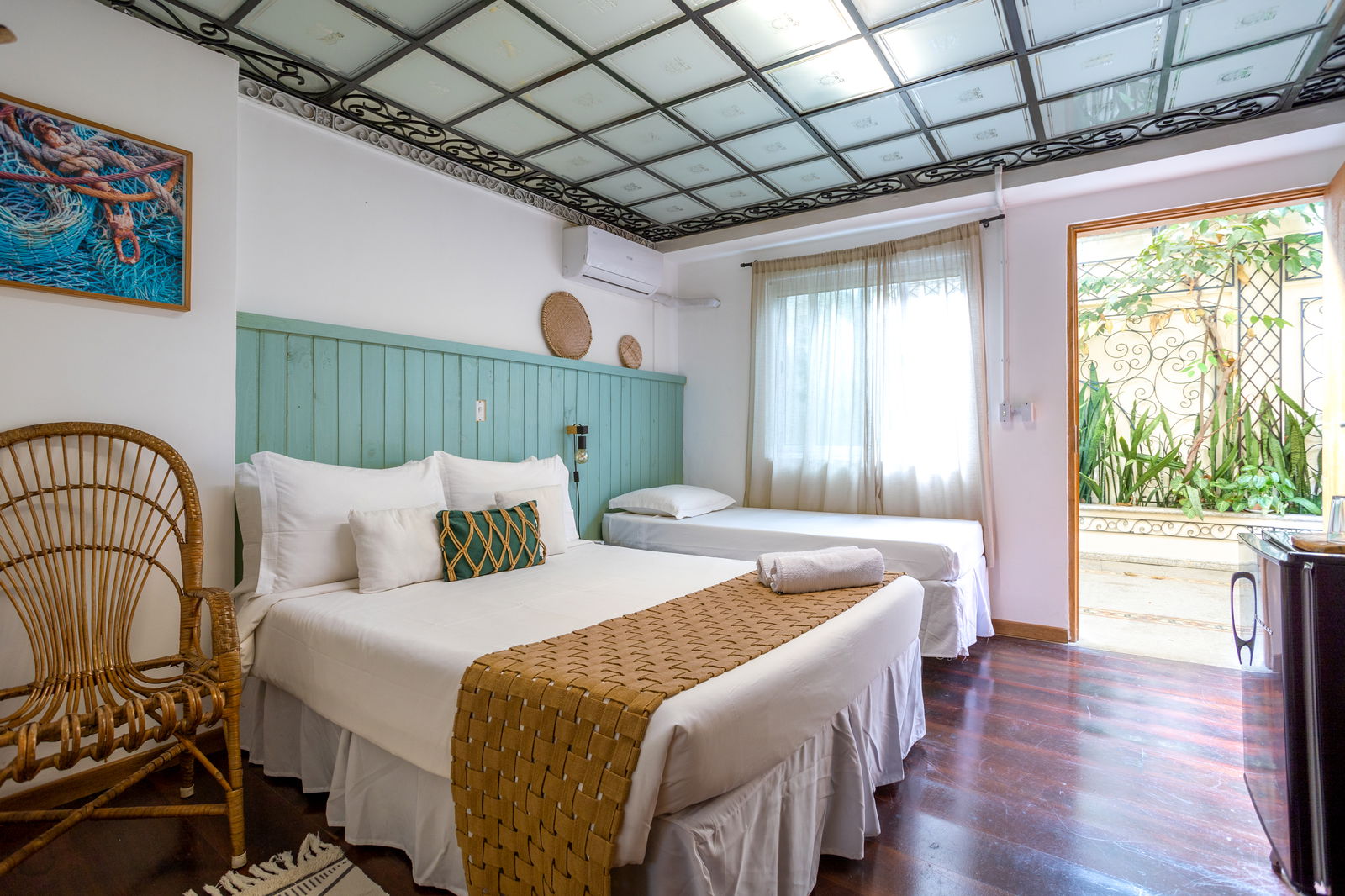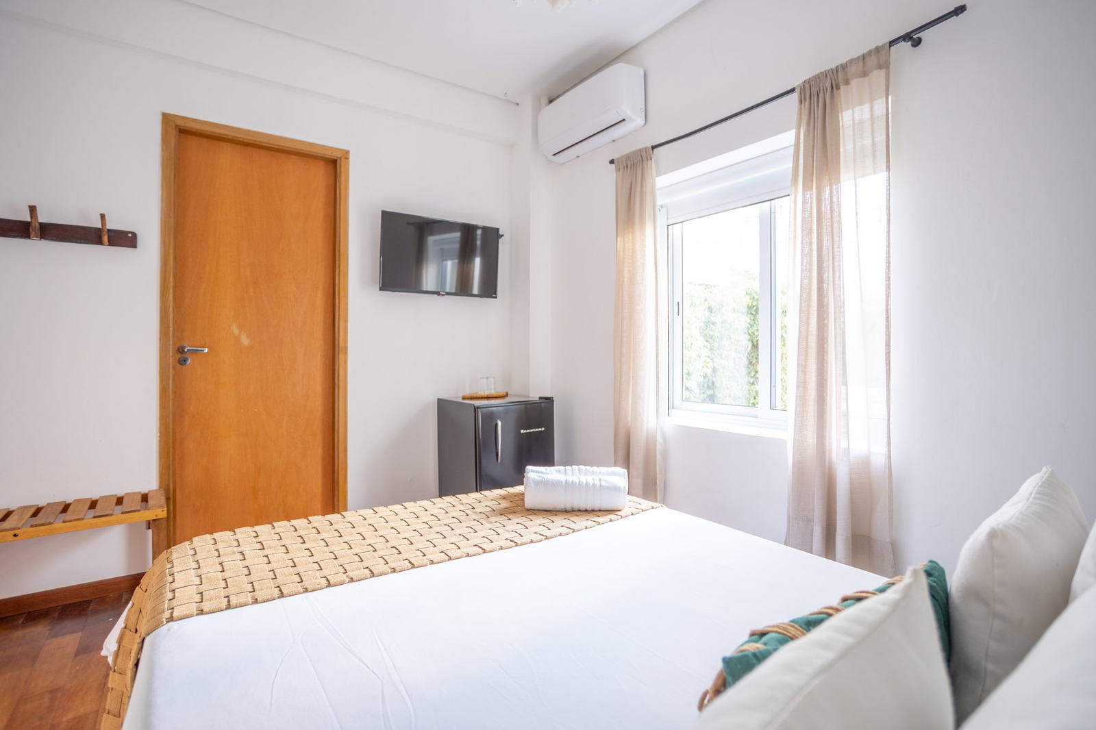 Suítes com ar-condicionado, banheiro interno, Smart TV e frigobar, a 100 m do mar e 150 m do Hostel da Vila. Silêncio pra dormir. Vida pra viver.